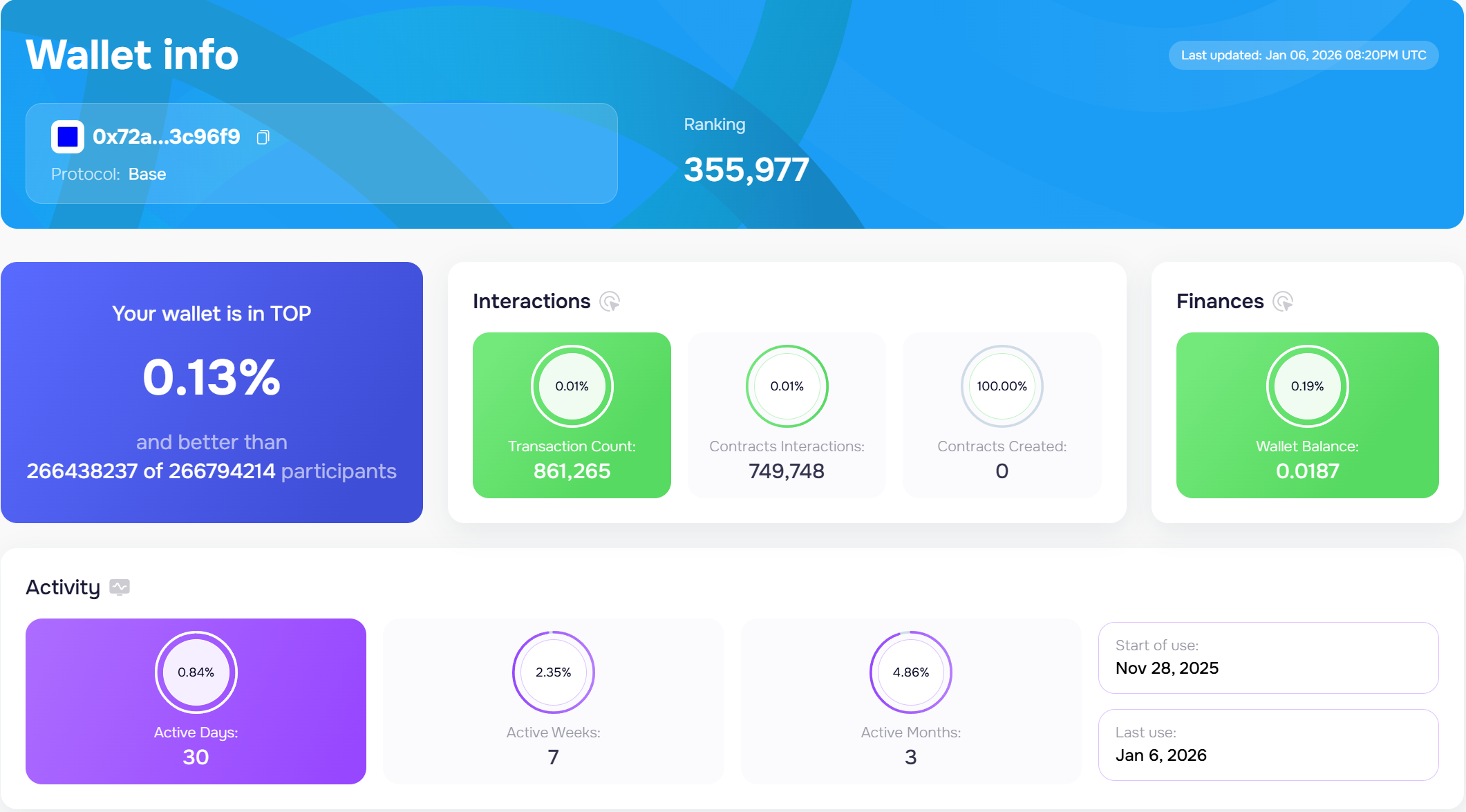 These insights allow Base ecosystem participants to better understand network dynamics and their level of engagement.