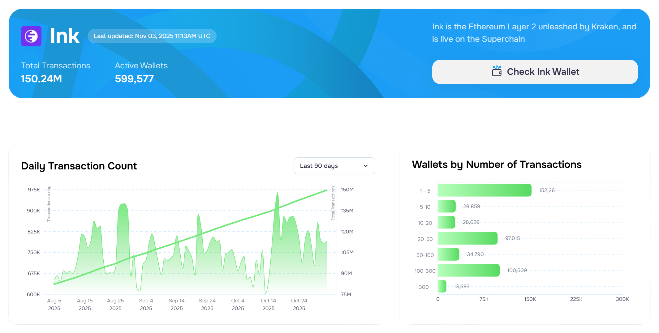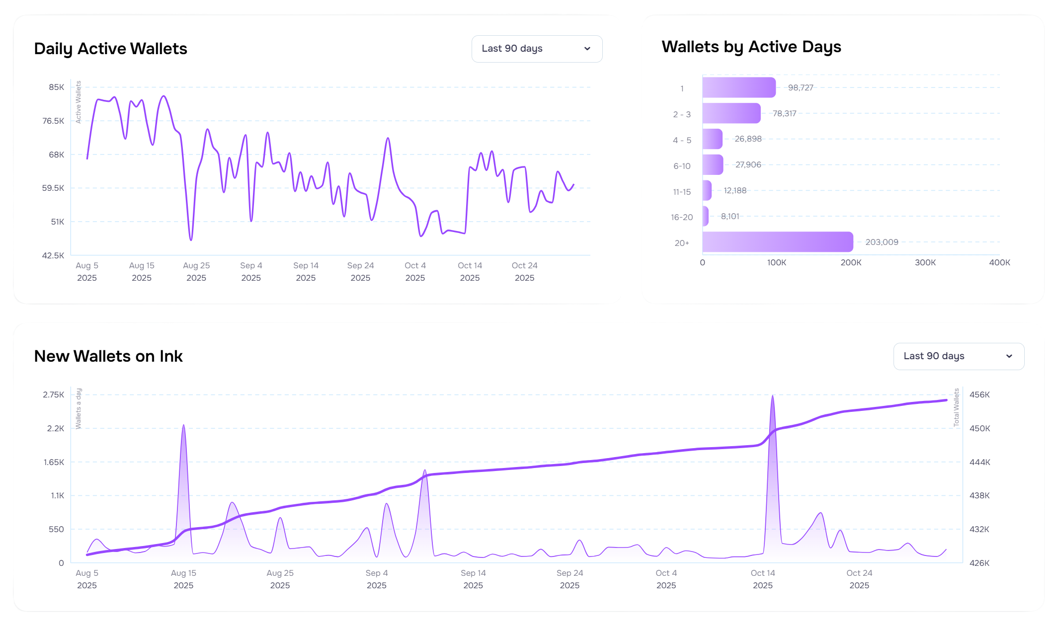 These insights allow Ink ecosystem participants to better understand network dynamics and their level of engagement.
